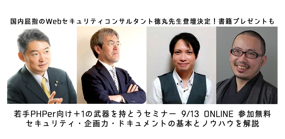 徳丸先生ご登壇!)+1の武器を持とうセミナー~セキュリティ・企画力・ドキュメントの基本とノウハウを解説~(9/13オンライン:無料:書籍プレゼントあり)プログラマーとして、コードをかけるようになることは重要です。しかし、+アルファの武器を持つと...