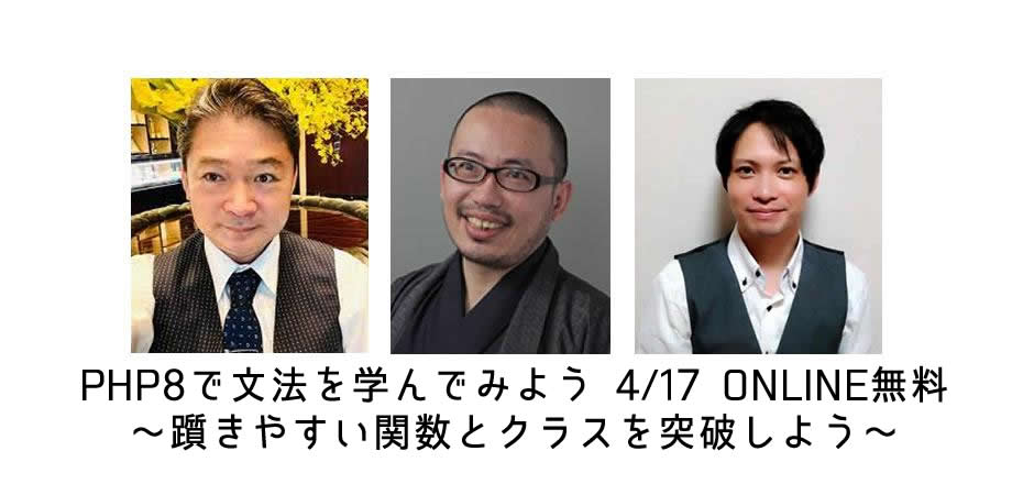 PHP8で文法を学んでみよう 4/17 ONLINE無料に代表の吉政が登壇します。