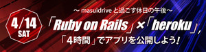 「Ruby on Rails」×「heroku」、4時間でアプリを公開しよう!~masuidriveと過ごす休日の午後~に登壇しました。